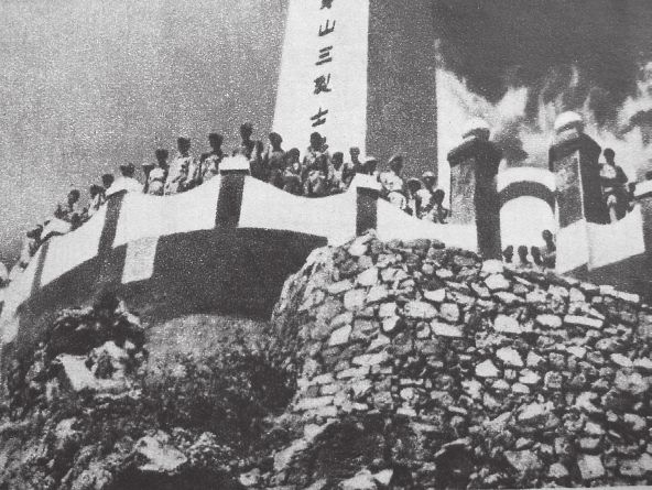 在山下的五勇士纪念馆,我们看到了军区颁布的训令,高度评价了五勇士“至死不屈的伟大民族精神”。为了纪念牺牲的马宝玉、胡福才、胡德林,1942年军区在山顶修筑了“狼牙山三壮士纪念碑”,后来被日军扫荡时破坏。1959年当地政府重修五勇士纪念碑,“文革”中再次遭到破坏。现在矗立在山顶的雄伟纪念碑,是2000年第三次修建的,由聂荣臻元帅亲笔题词。五勇士的精神既是中华民族不屈不挠的体现,也是中国共产党领导下的八路军在抗日战争中为国家、为民族英勇献身的典型。只有亲身登上狼牙山,才能体会到五勇士的伟大。