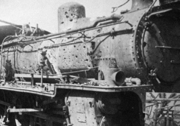 日军在密支那车站建立的火车头防线照片之二