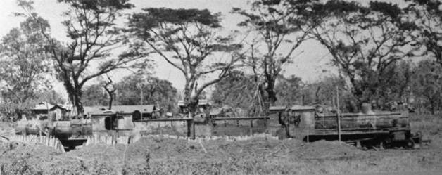日军在密支那车站建立的火车头防线照片之一