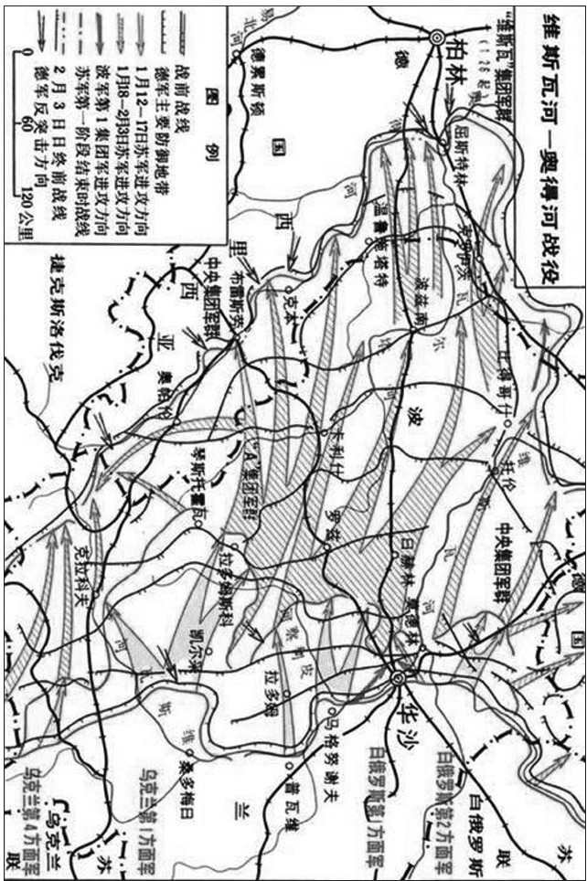 维斯瓦河—奥得河战役示意图至此,华沙彻底陷落。这让希特勒和古德里安之间显得更加“敌对”,分歧不断。古德里安还在为希特勒调动“大德意志”装甲掷弹兵师耿耿于怀。当他得知希特勒将第6装甲集团军开往匈牙利,而不是最重要的维斯瓦河前线时,他无法压住心中的怒火,开始与希特勒理论。然而希特勒并没有接受他的话,因为在他的眼里,华沙的失守比什么都严重。