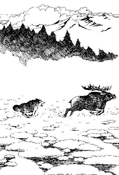 最后,在第四天临近结束的时候,它把这头雄驼鹿拖垮了。它在猎物旁呆了一天一夜,不是吃就是睡,不是睡就是吃,轮番地进行。后来,休息够了,恢复了精神,身体强壮了,它将脸转向营地,转向约翰•桑顿。它开始大步流星地往回不停地赶路,一个小时接着一个小时,道路虽然错综复杂,可它从来没有迷失方向,它穿过陌生的大地,一直向前往家赶,这将人类以及人类的磁针置于无地自容的地位。