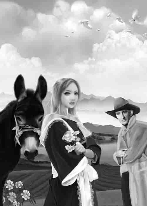 她从筐里取出粮食后,便好奇地打量着四周。她担心裙子被刮破,便略微撩起漂亮的裙子,走进围栅,想瞧瞧我歇息的地方,看看那用麦秸和羊皮搭成的小屋;墙上挂着我的大斗篷,我的牧羊棍,我的火石枪。这里的一切都让她十分开心。